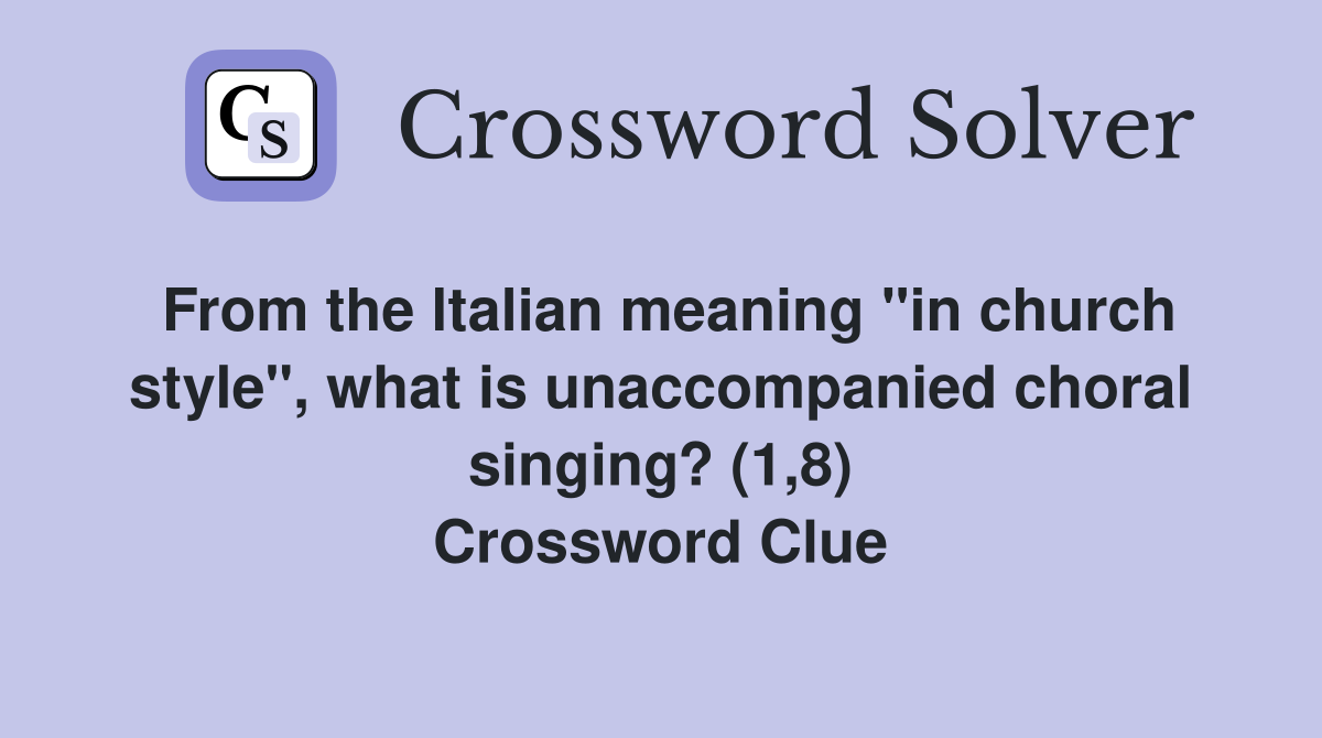 From the ltalian meaning quot in church style quot what is unaccompanied