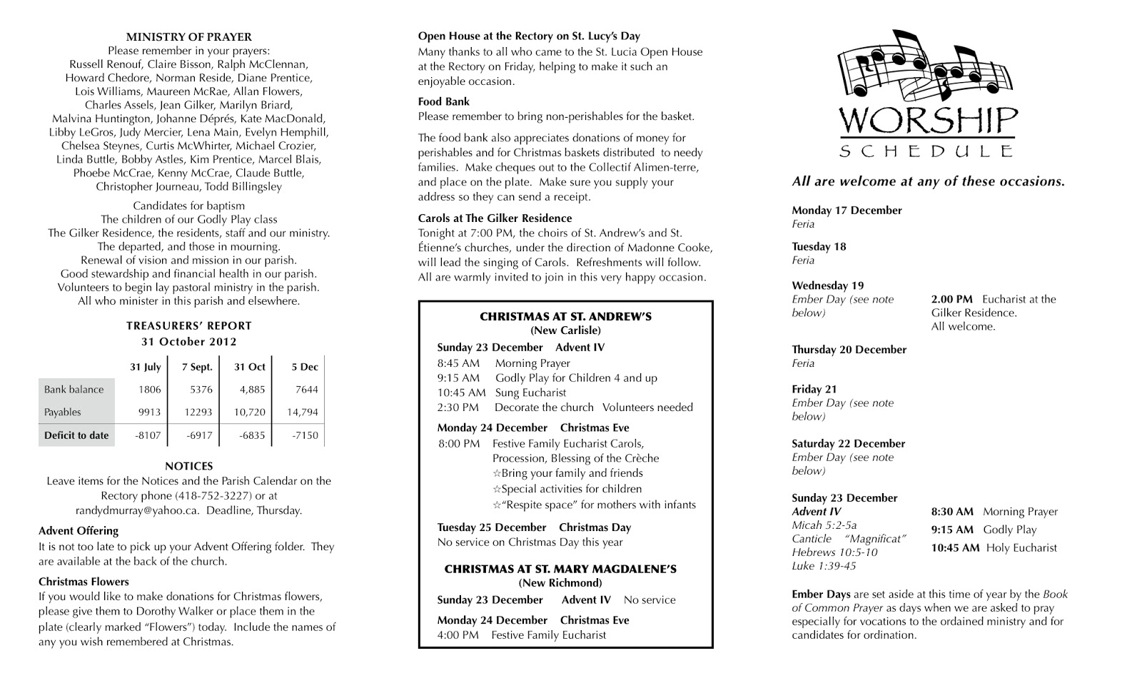St Andrew #39 s Anglican Church New Carlisle Québec: Weekly Leaflet