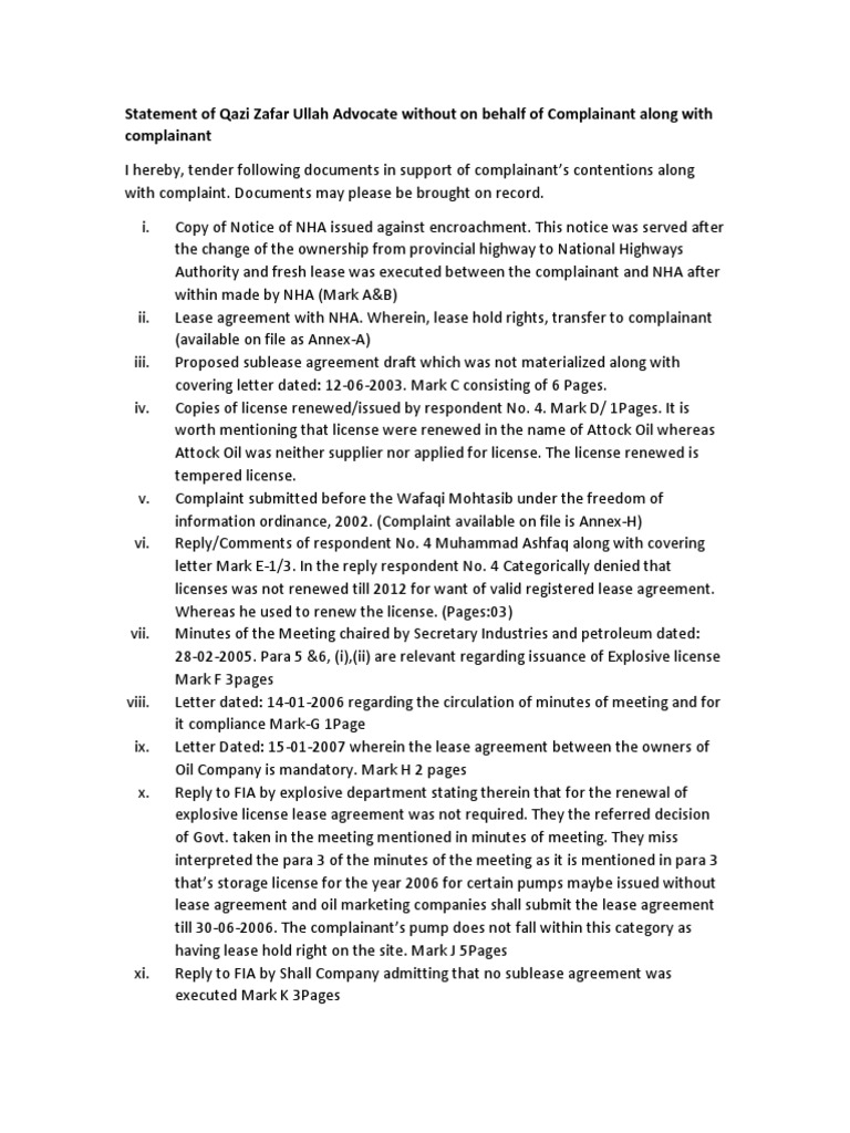 Statement of Qazi Zafar Ullah Advocate Without On Behalf of Complainant