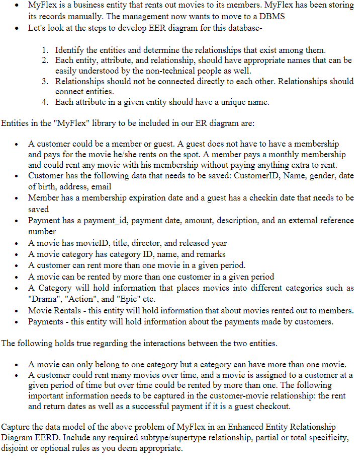 Solved MyFlex is a business entity that rents out movies Chegg com