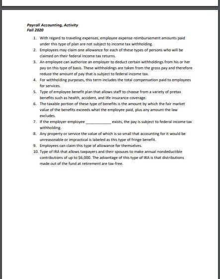 Solved Payroll Accounting Activity Fall 2020 Chapter 4 Word Chegg com