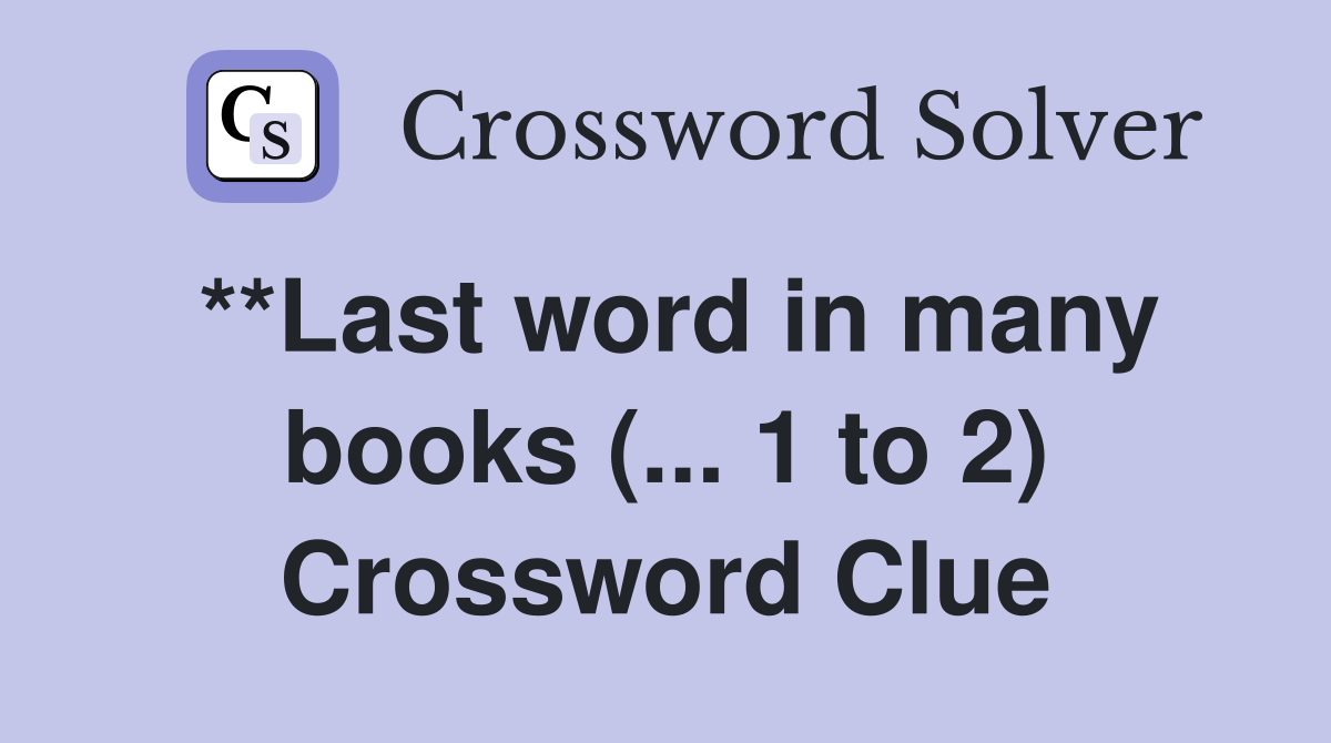 **Last word in many books ( 1 to 2) Crossword Clue Answers