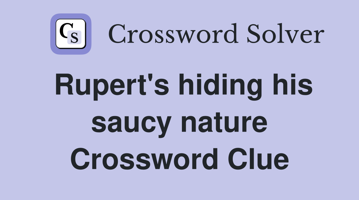 Rupert #39 s hiding his saucy nature Crossword Clue Answers Crossword