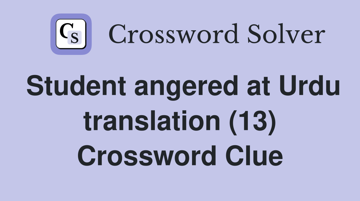 Student angered at Urdu translation (13) Crossword Clue Answers