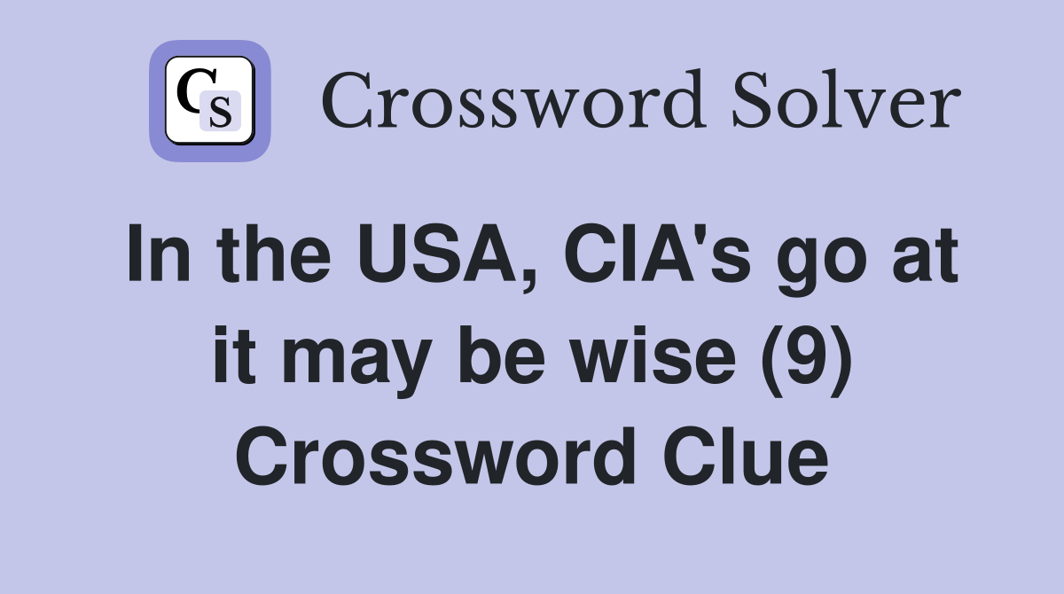In the USA CIA #39 s go at it may be wise (9) Crossword Clue Answers