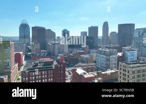 Aerial Shot: Discover Cincinnatis vibrant downtown skyline and iconic