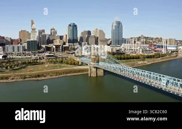 Aerial Tracking Shot of Cincinnati: Discover Cincinnatis vibrant