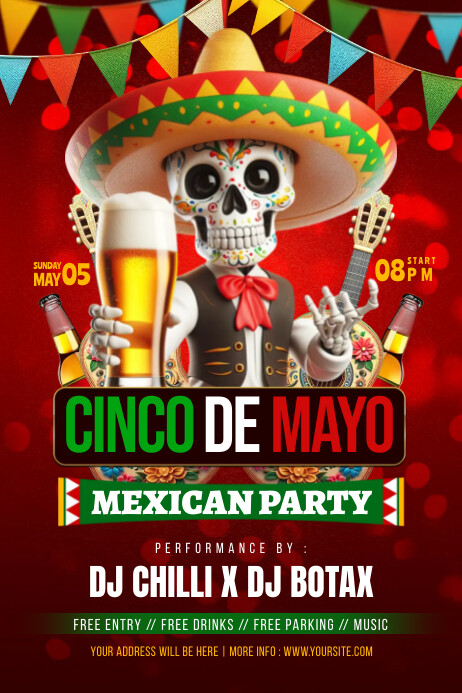 Cinco De Mayo poster template Text customized for invitation for fiesta