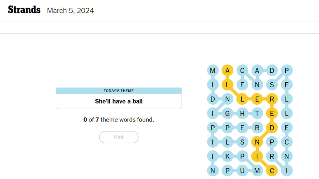NYT Strands #2 March 5 2024 Answers (3/5/24) Try Hard Guides