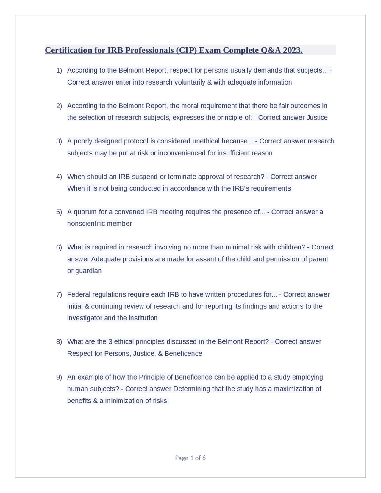 Certification for IRB Professionals (CIP) Exam Questions with Verified