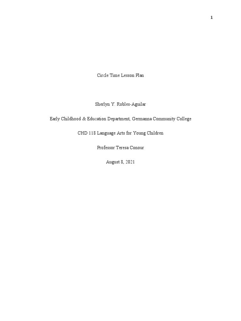 Circle Time Lesson Plan PDF Lesson Plan Education Theory