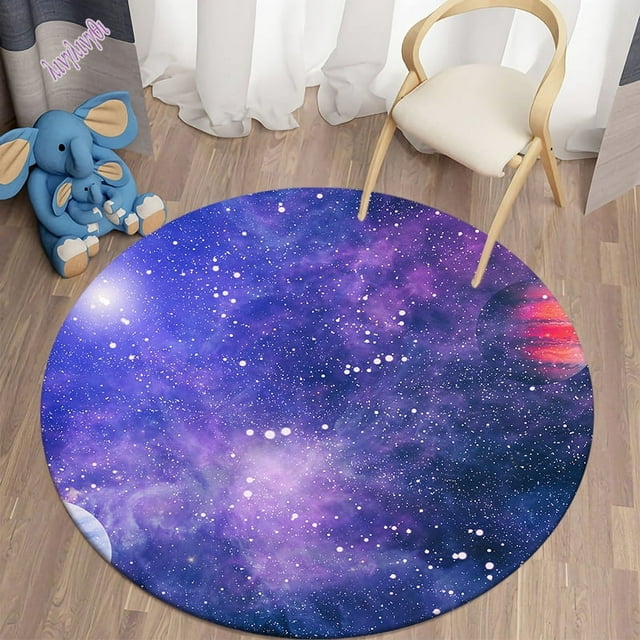 Circular Carpet in Galaxy Space Living Room Bedroom Bathroom Soft