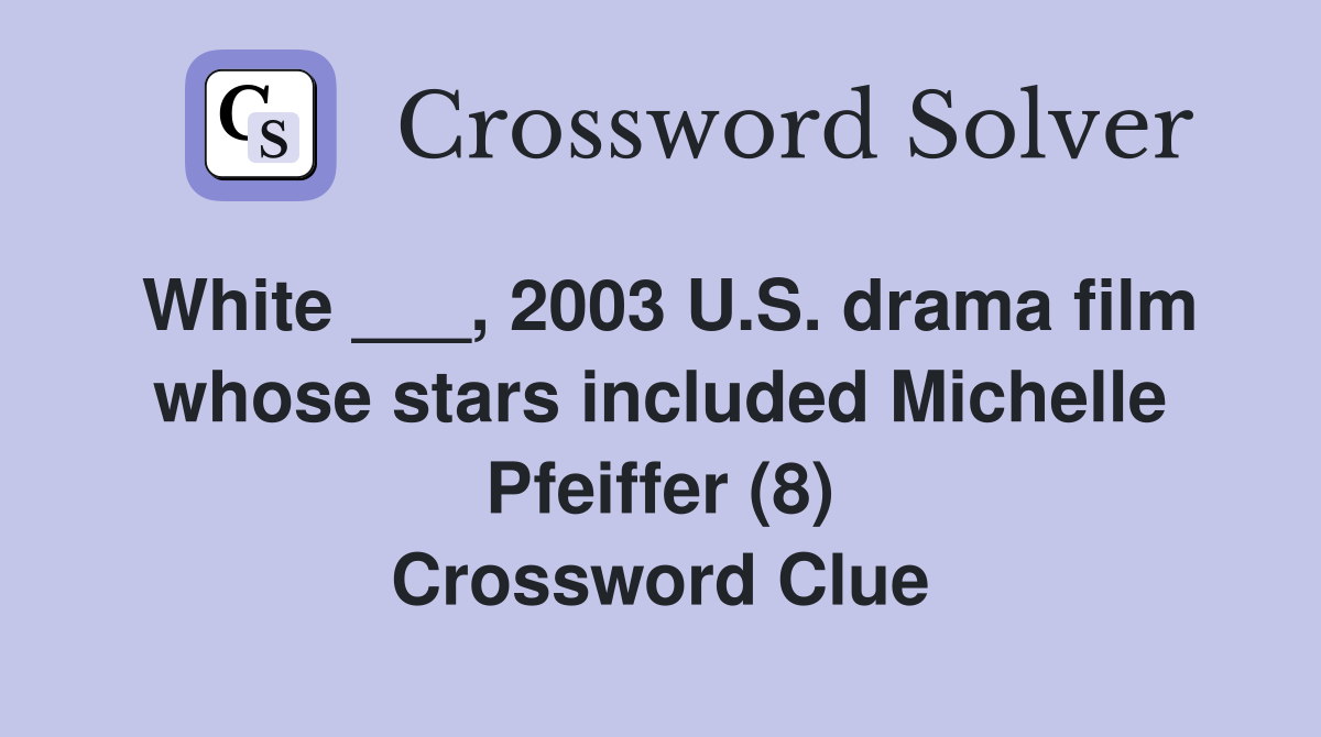 White 2003 U S drama film whose stars included Michelle Pfeiffer
