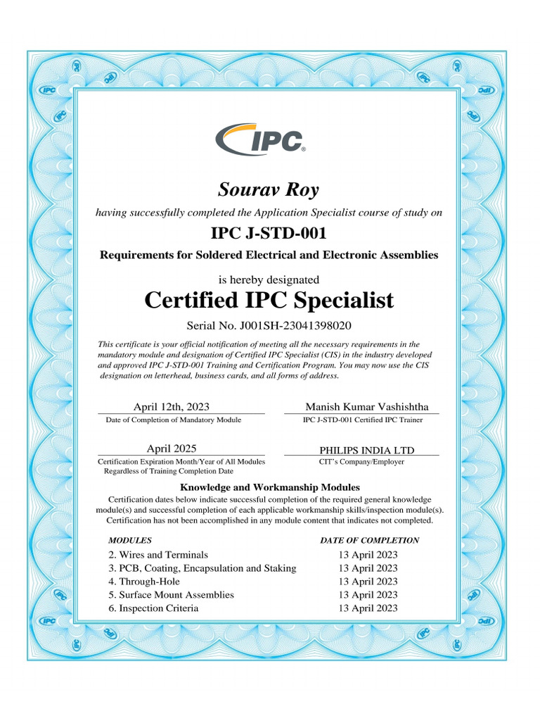 CIS IPC J STD 001H EN Certificate of Completion J STD 001 CIS