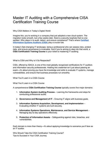 Master CISA Certification: Your Comprehensive Guide to Success