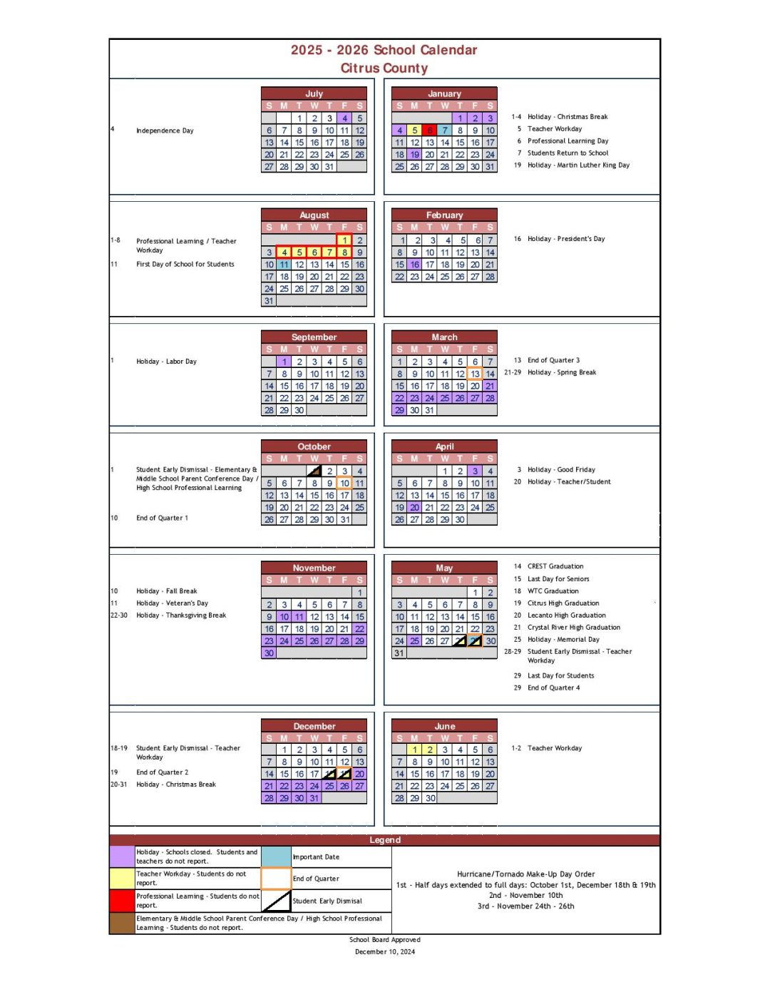 Citrus County School District Calendar 2024 Schoolcalendars net