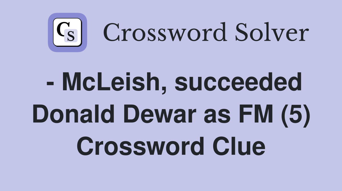McLeish succeeded Donald Dewar as FM (5) Crossword Clue Answers