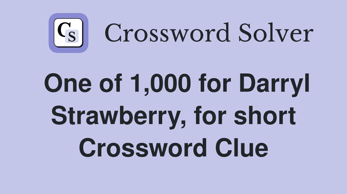 One of 1 000 for Darryl Strawberry for short Crossword Clue Answers