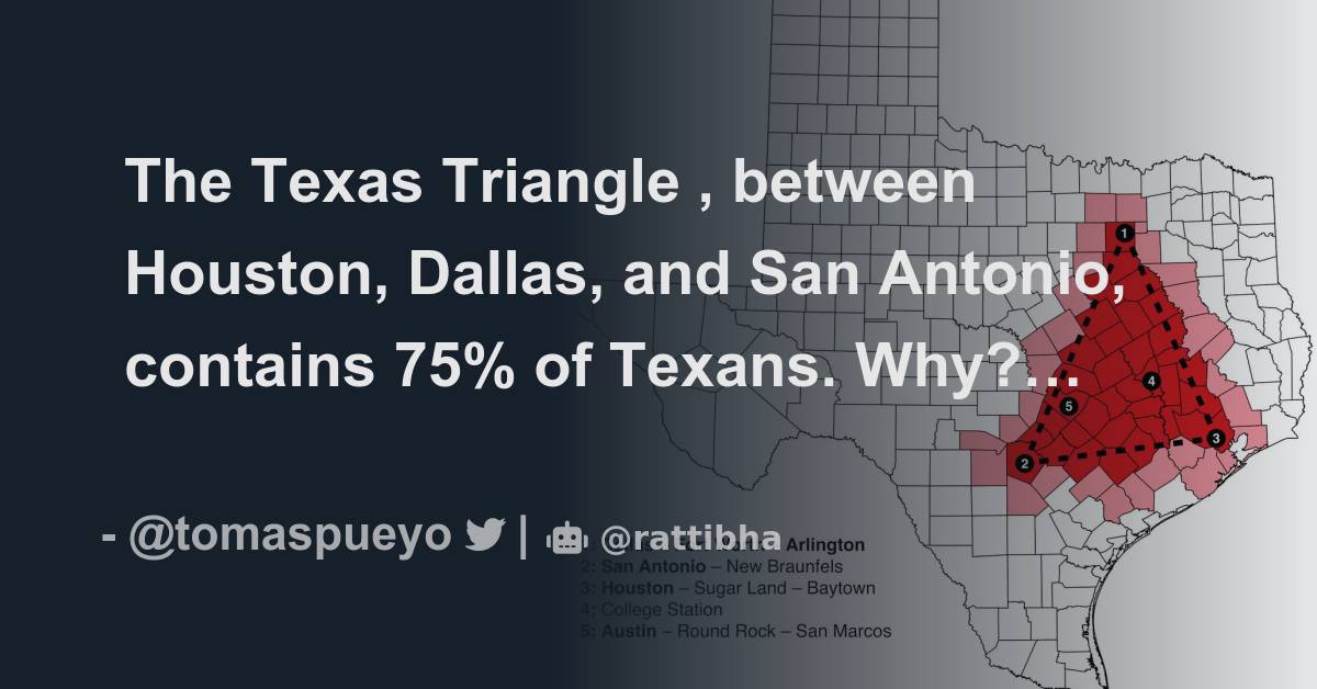 The Texas Triangle between Houston Dallas and San Antonio contains