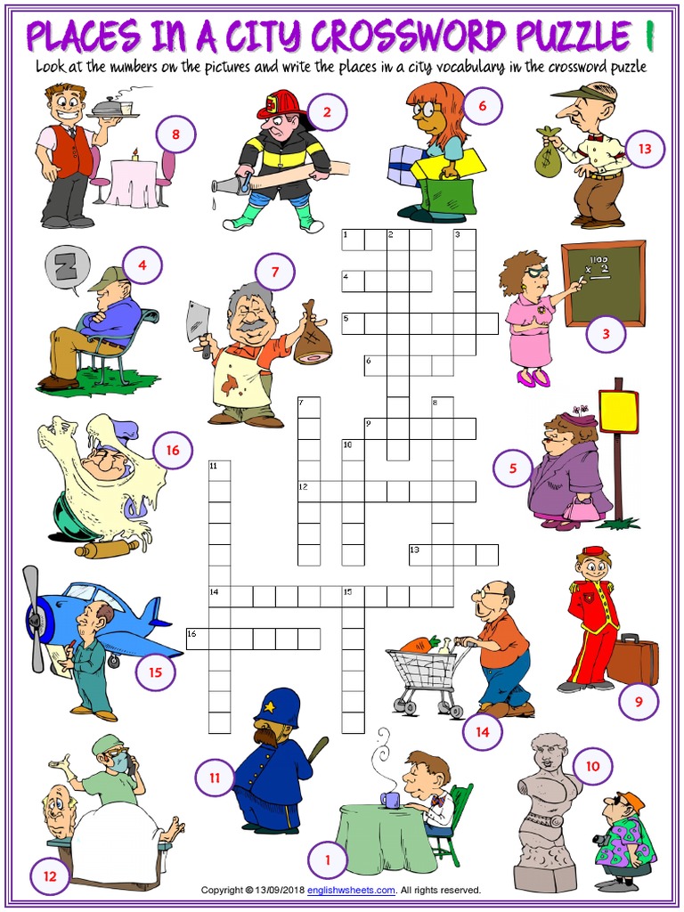 City places:crossword puzzle with key Worksheets Crossword Teaching