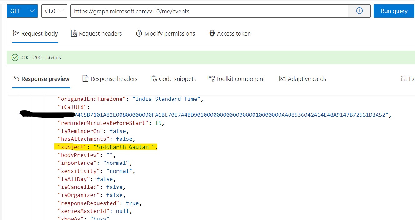 When using /users/{user id}/calendar/calendarView?startDateTime={time