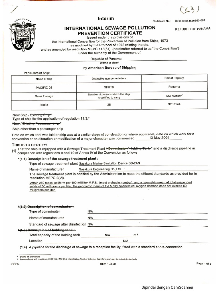 International Sewage Pollution Certificate 1 PDF