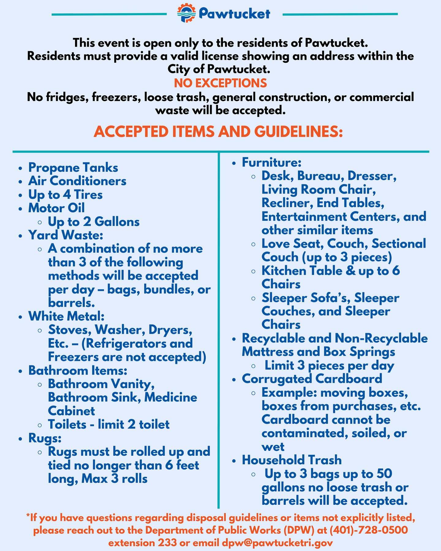 City of Pawtucket to Host Bulky Waste Drop Off Events Free for