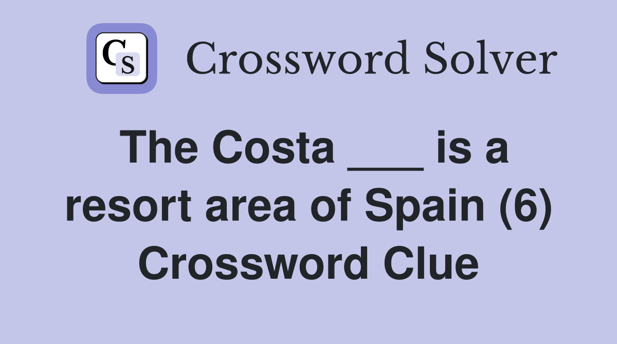 The Costa is a resort area of Spain (6) Crossword Clue Answers