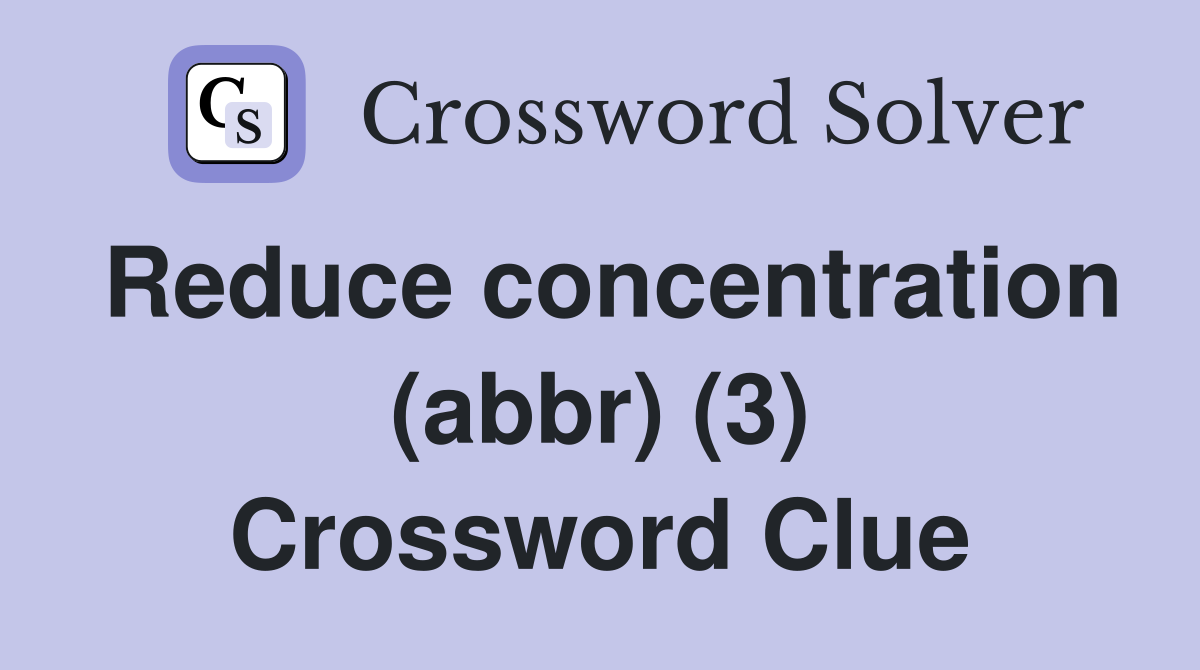 Reduce concentration (abbr) (3) Crossword Clue Answers Crossword Solver