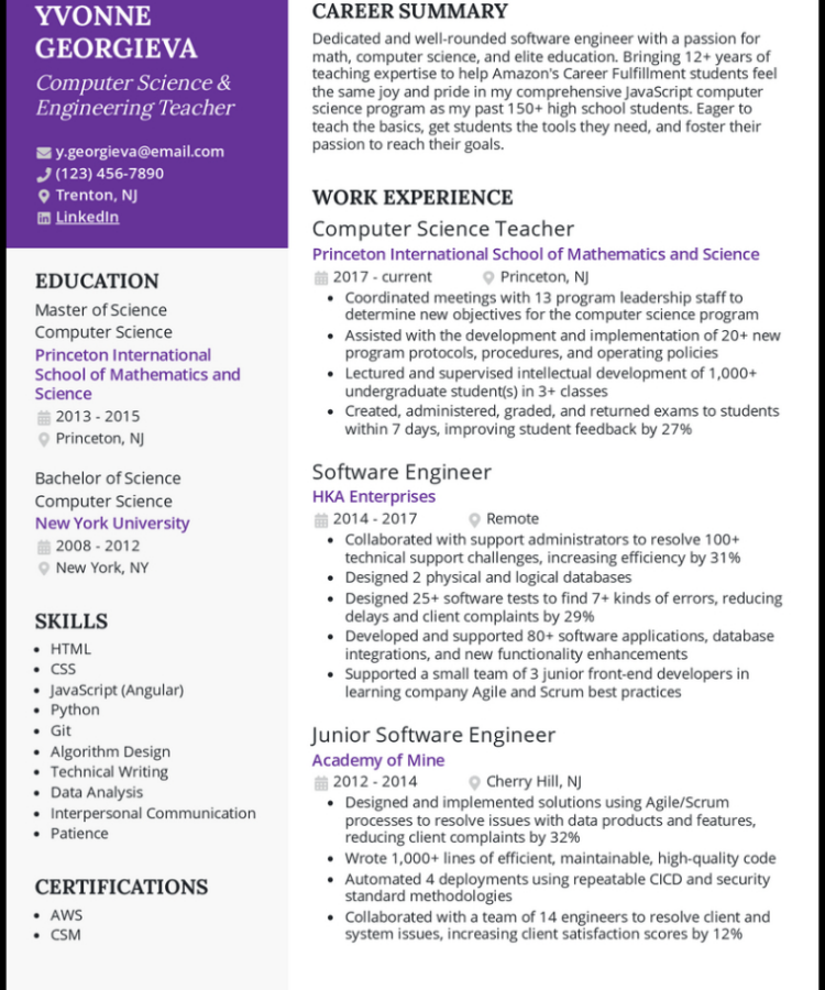 Elementary School Teacher Resume Template
