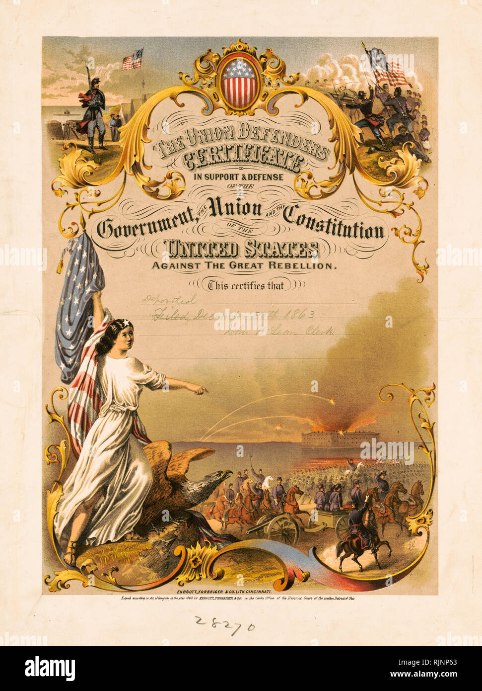 American Civil War Certificate of service The Union Defenders