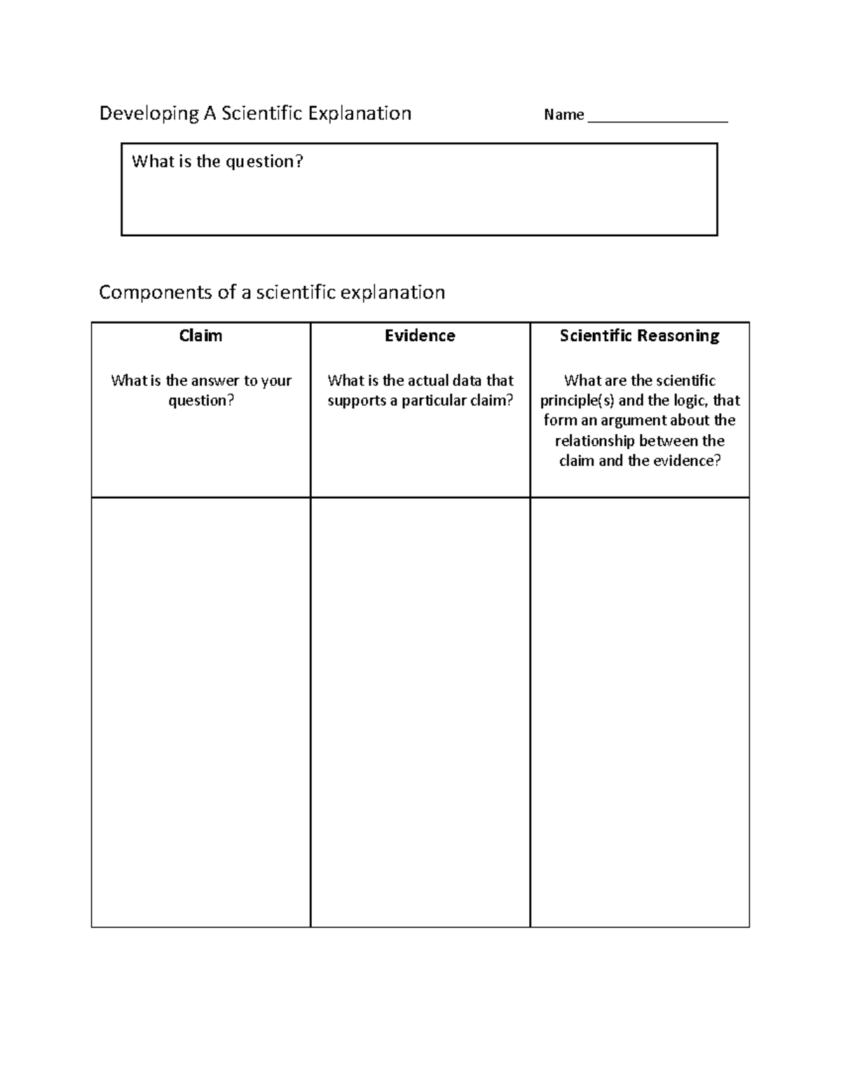 Claim Evidence Reasoning Template Developing A Scientific Explanation