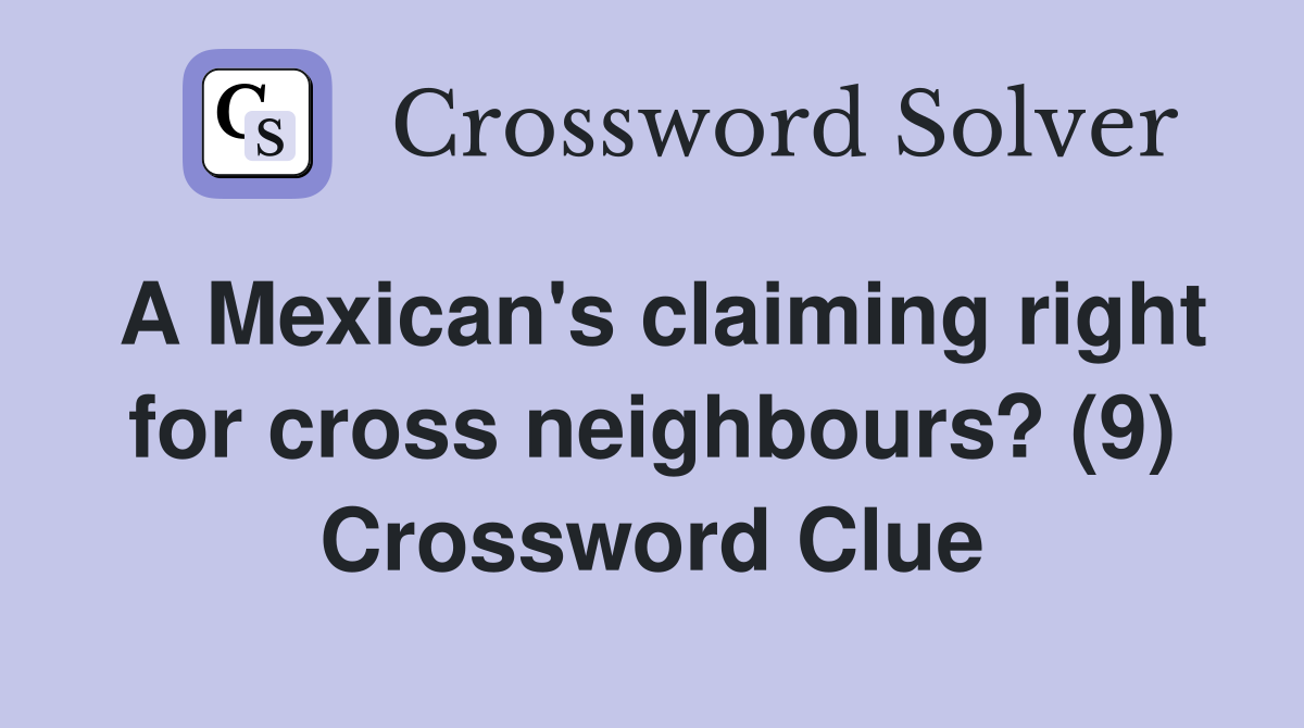 A Mexican #39 s claiming right for cross neighbours? (9) Crossword Clue