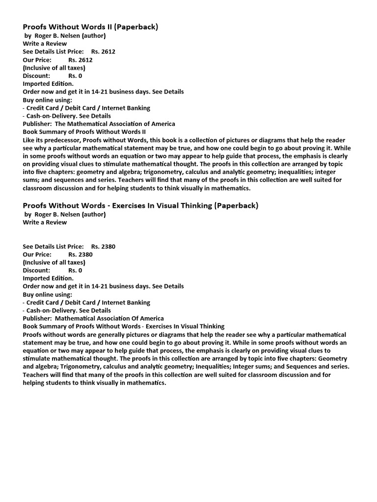 Proofs Without Words II PDF Teaching Mathematics Group (Mathematics)