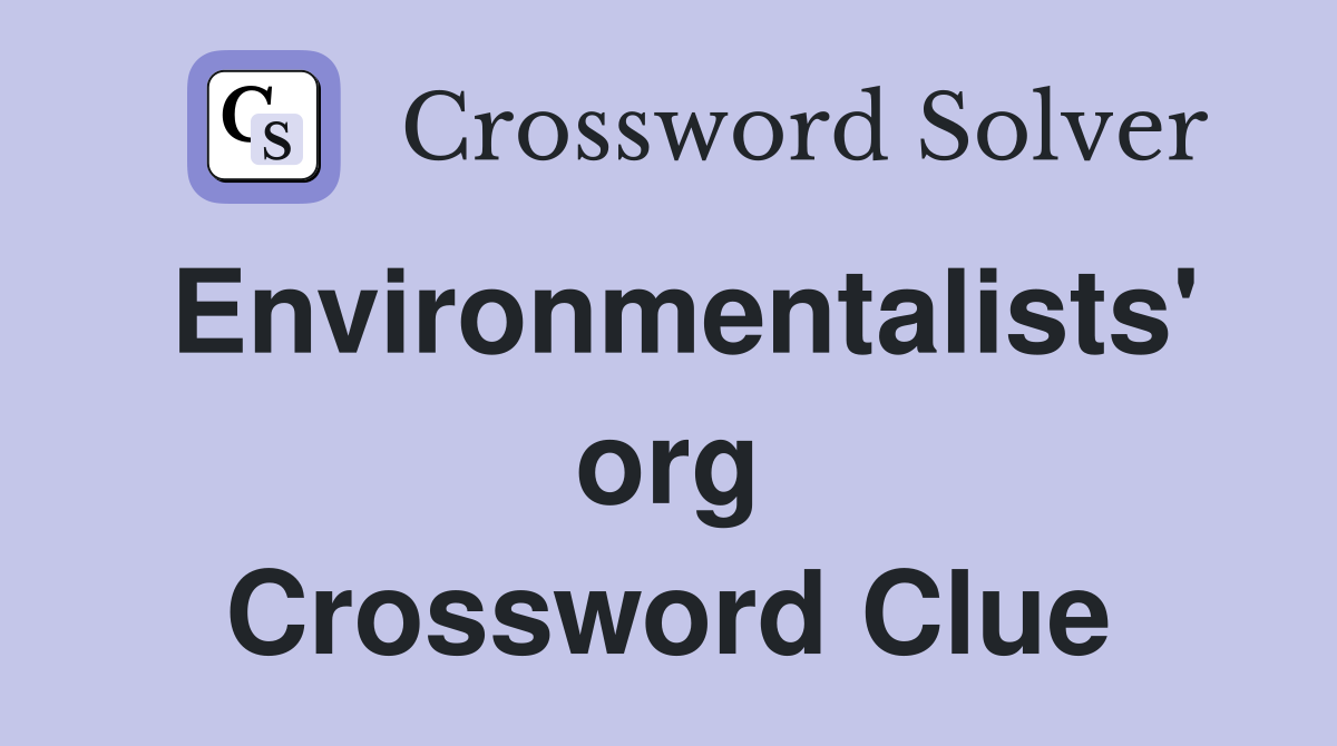 Environmentalists #39 org Crossword Clue Answers Crossword Solver