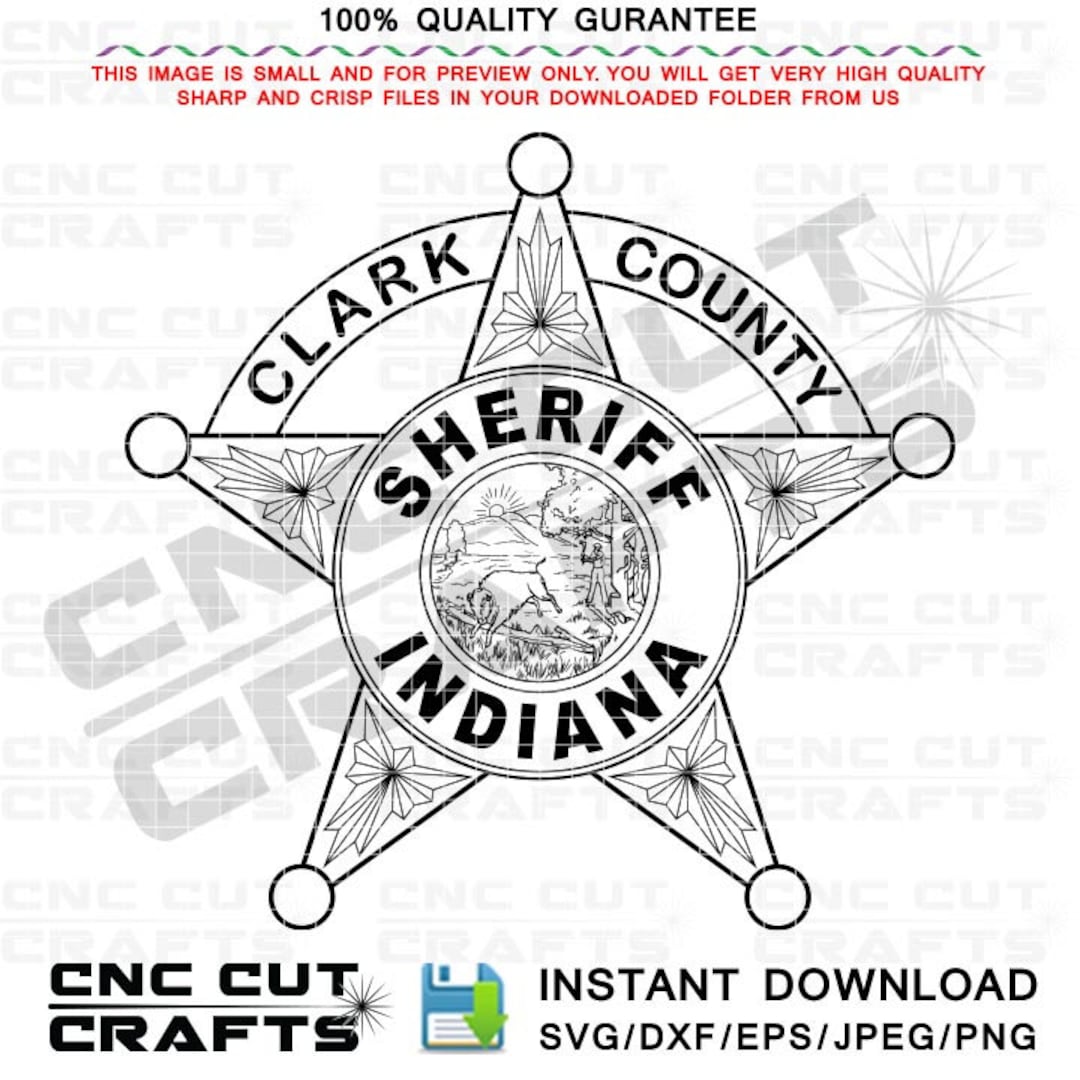 Clark County Indiana Sheriff Svg Badge Vector File in Black Line Art