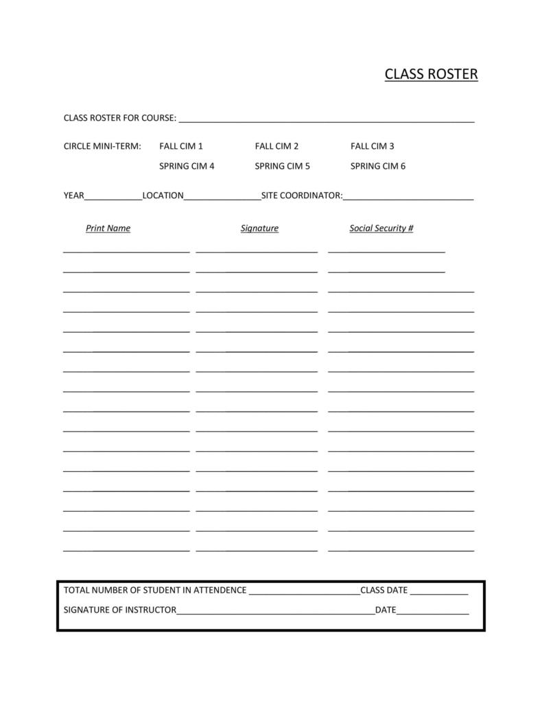 Class Roster Templates World of Printables