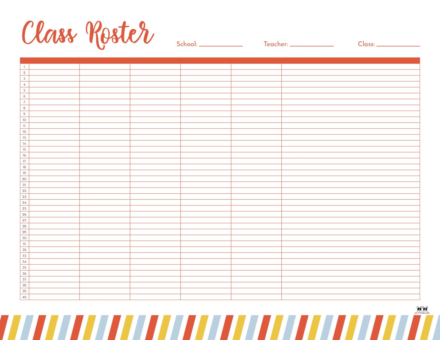 Free Printable Class Roster Templates Excel Word PDF Editable