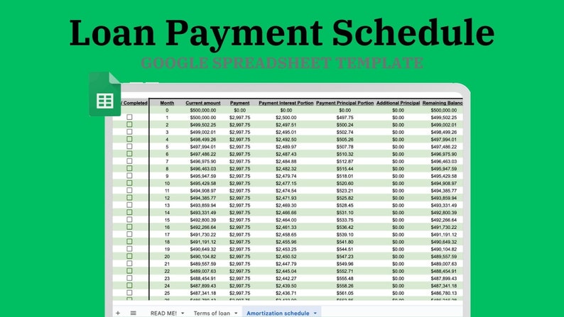 Loan Payment Schedule Google Sheets Template Etsy