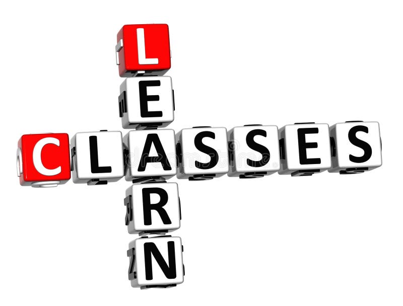 Learn Classes White and Red 3D Crossword Puzzle Stock Illustration