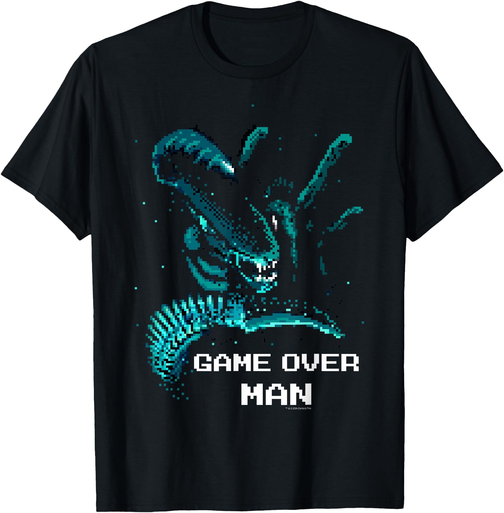 Aliens Iconic Xenomorph Game Over Man Pixelated Style Logo T Shirt