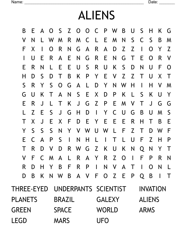 Similar to UFO #39 s and Aliens Crossword WordMint