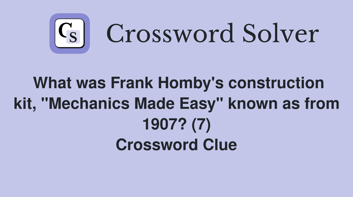 What was Frank Homby #39 s construction kit quot Mechanics Made Easy quot known as