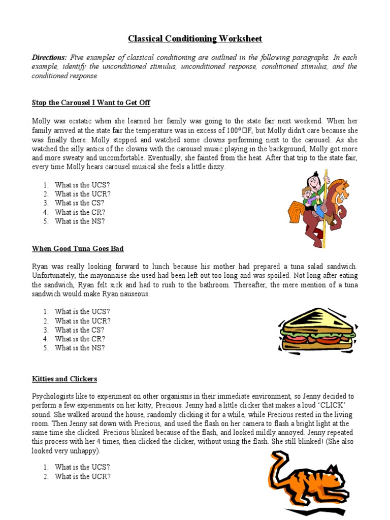 Classical Conditioning Worksheet Answers