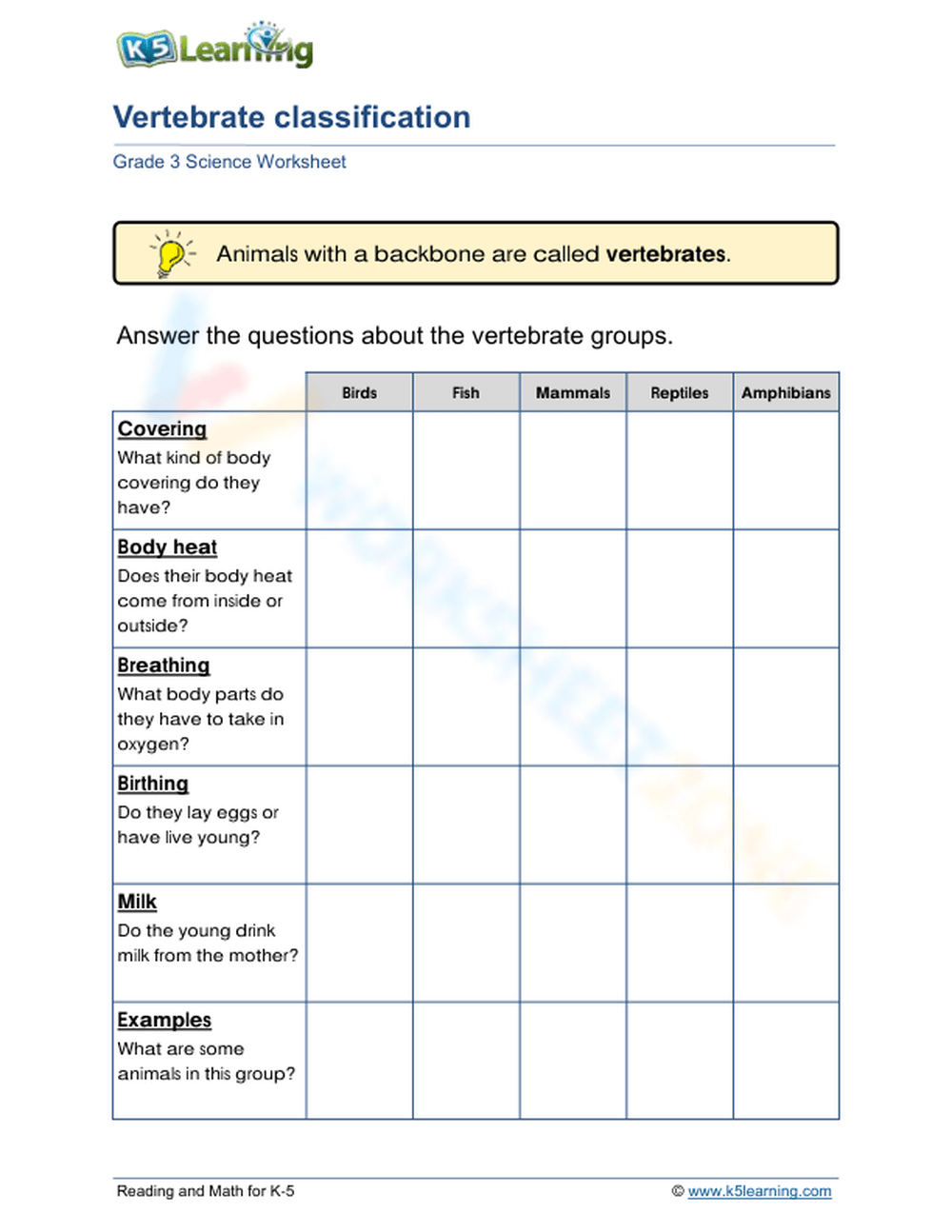 Animal Classification Worksheets K5 Learning Worksheets Library