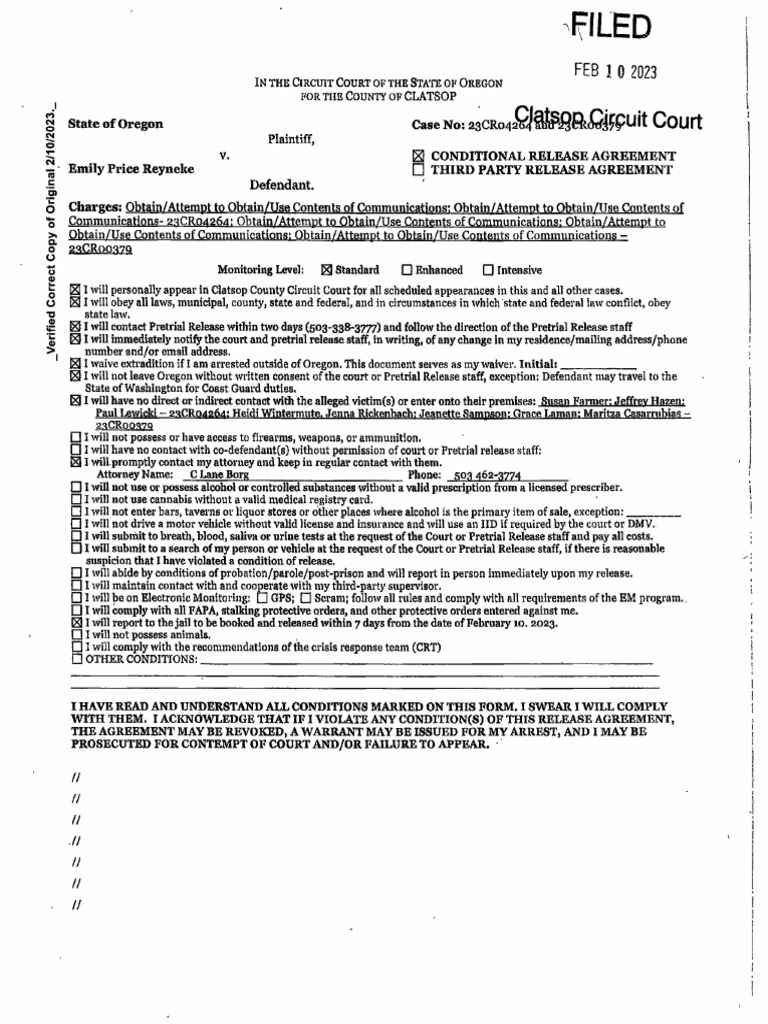 23CR00379 Documents Emily Reyneke Whistleblower Retaliation Clatsop