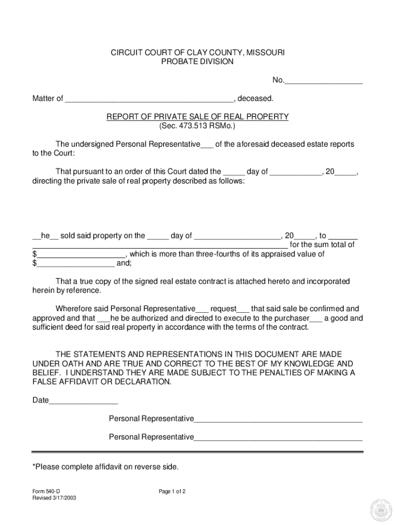 Fillable Online circuit7 CIRCUIT COURT OF CLAY COUNTY MISSOURI PROBATE