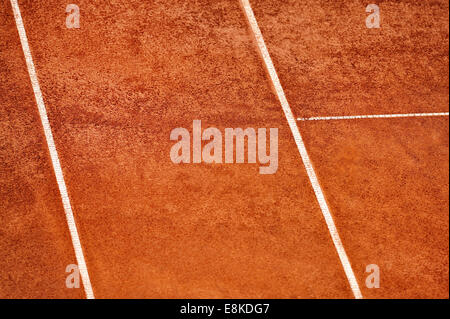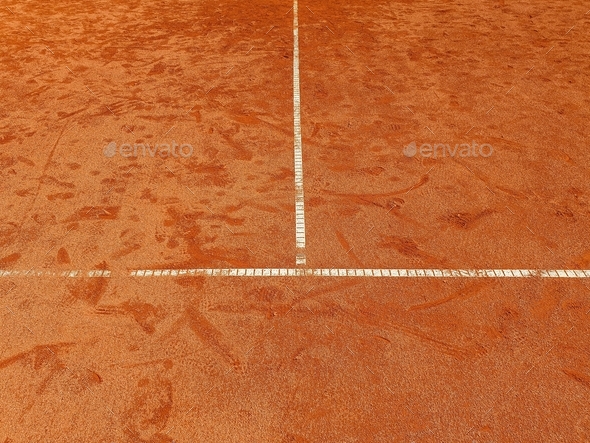 White lines on orange clay tennis court Stock Photo by 9 fingers