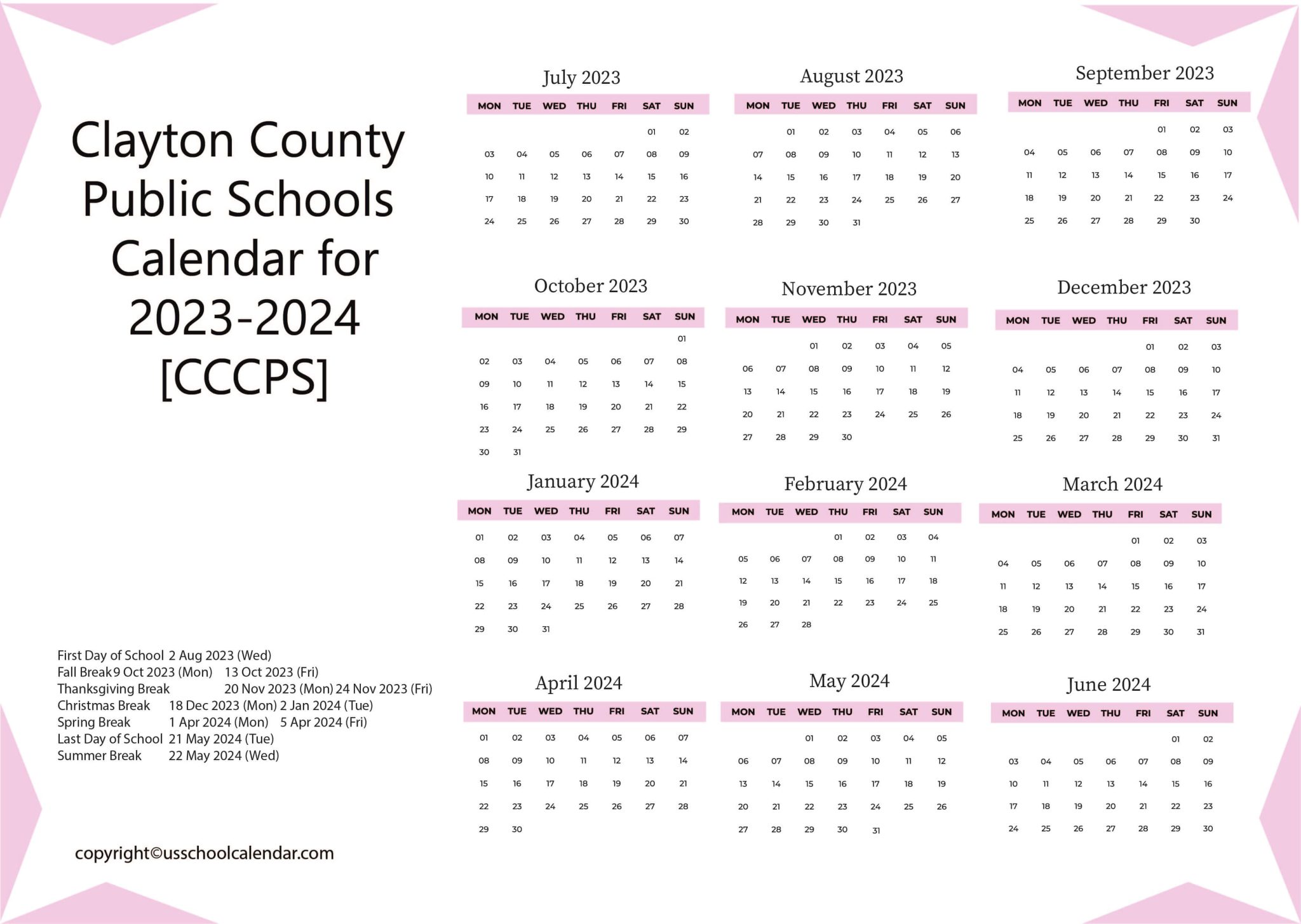 Clayton County Public Schools Calendar US School Calendar