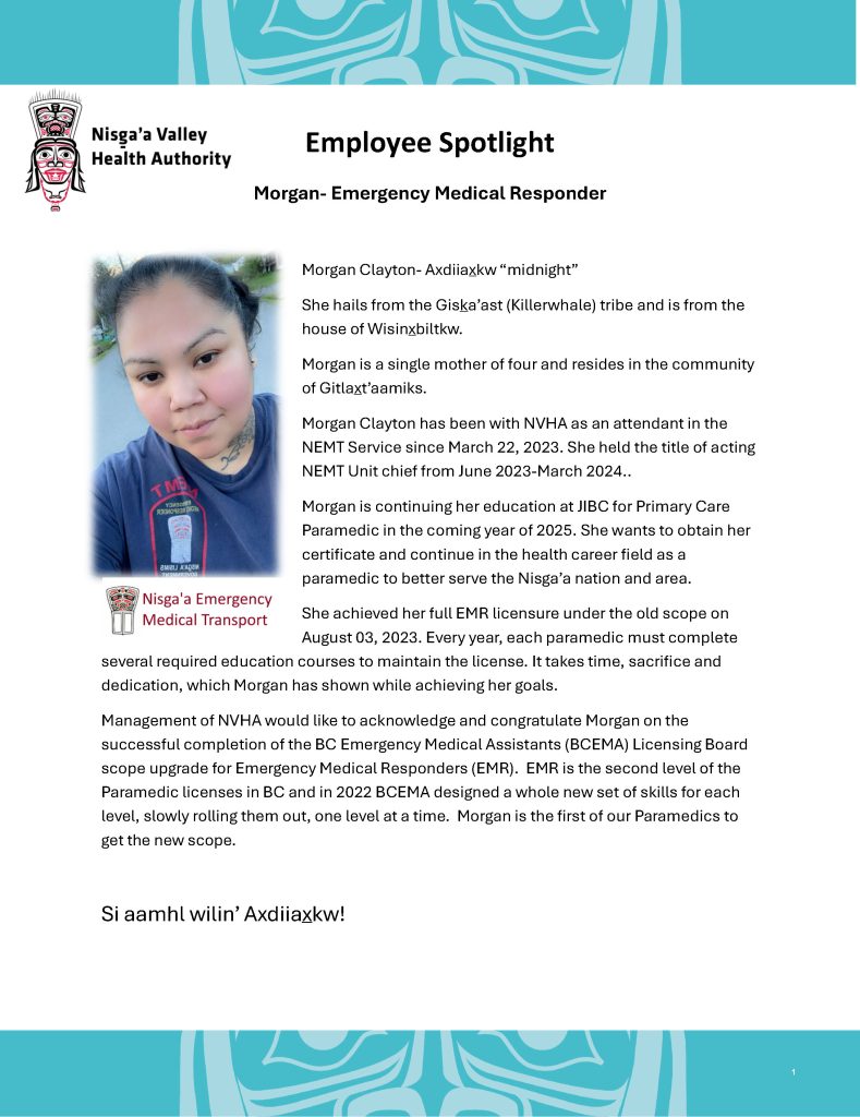Morgan Certificate completion and recognition Nisga #39 a Valley Health